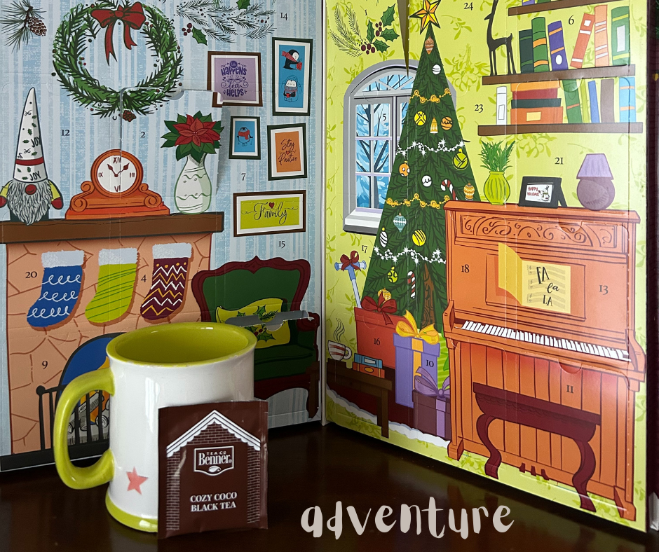 This morning’s adventure is cozy cocoa black tea. A friend gifted me with a tea Advent calendar, and I feel a bit of excitement each time I open one of the doors to reveal the day’s selection. It began with a lovely honey chamomile, a pleasant way to ease into the dual seasons of Advent and winter. But now, this cozy cocoa…surprising and unusual.